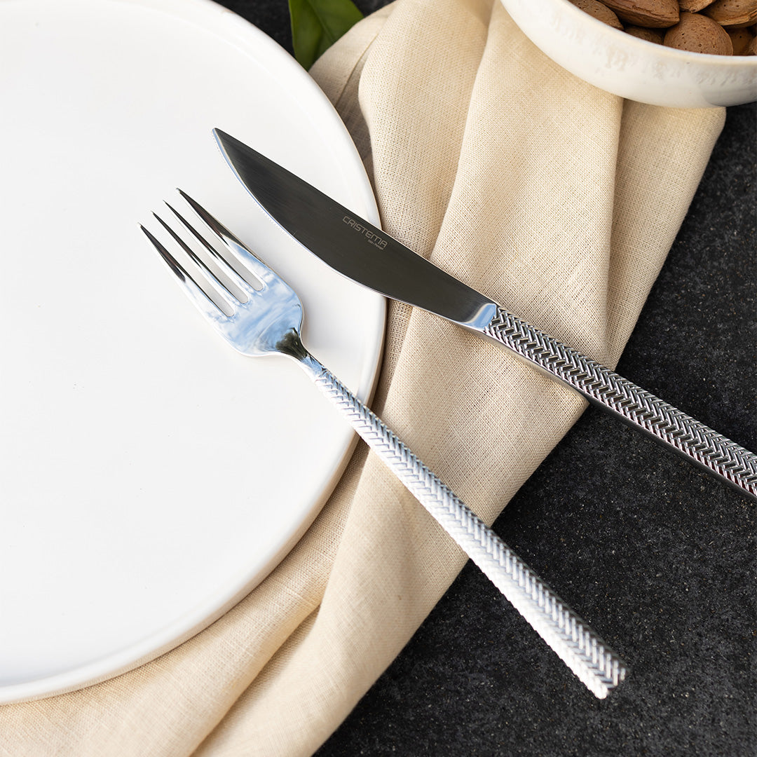 Cristema Dakar 130-Piece Cutlery Set with Wood Cube Box embodies strength, elegance, and cultural depth. Inspired by Dakar’s endless waves and desert dunes, its bold geometric texture and glossy finish bring character and refinement to any table setting.